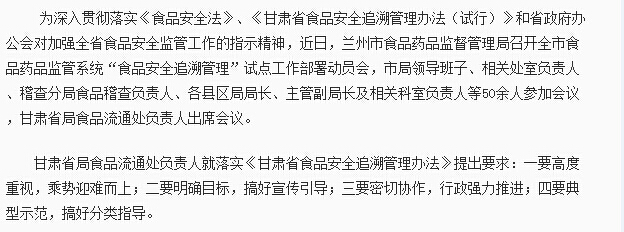 甘肃食品安全追溯管理试点创建工作启动